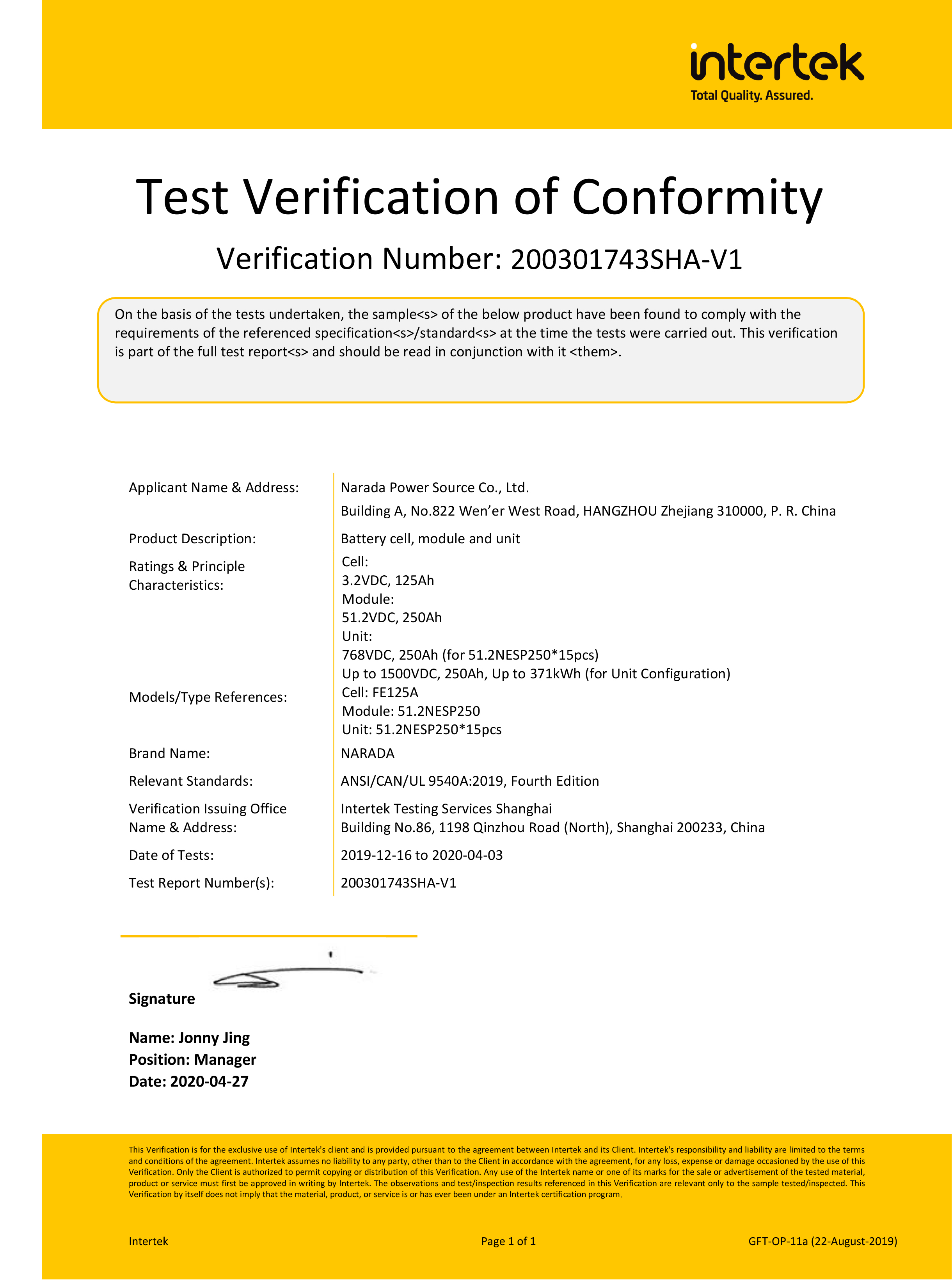 今年会电源为全球第一批通过MW级集装箱储能系统UL9540、UL9540A认证的企业。通过UL9540、UL9540A认证,意味着今年会储能系统在全球范围内具有极佳的认可度。